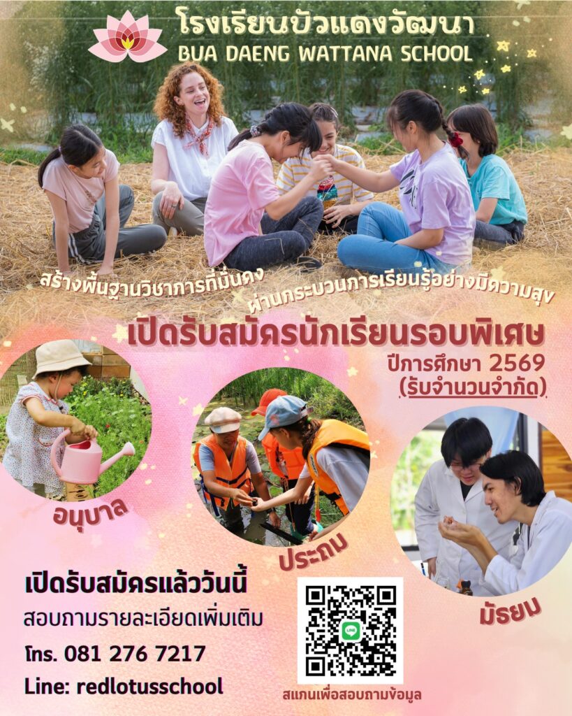 โรงเรียนบัวแดงวัฒนาเปิดรับสมัครนักเรียน “รอบพิเศษ” ปีการศึกษา 2569